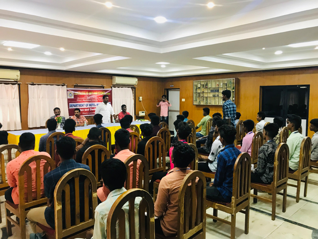 Earlier, one of a student Nishanth, II B.Sc. Hotel Management and Catering Science welcomed the chief guest, Dr. S.Karthikeyan, Head, Department of Hotel Management chaired the event and one of our students Gowtham, III B.Sc. Hotel Management and Catering Science delivered vote of thanks. Assistant Professors from the Department organized the event.