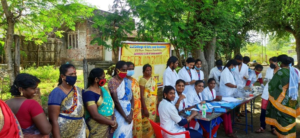 The Sumner's club of the Department of Biochemistry, J.J. College of Arts and Science was organized a special Free Blood Grouping Camp at Thekkattur village, Pudukkottai Dt, associated with Social Agriculture Children's Education & Women Development Trust (SACEWD Trust), Pudukkottai.