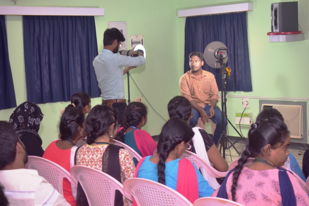 The Department of visual communication, J.J. College of Arts and Science (Autonomous), Sivapuram, Pudukkottai organized to special lecture on to consecuted for her students on Wednesday 22.12.2021 Mr. ARF. Riyas Deen. Freelance Photographer, Karaiyur spoke on recent trends in wedding photography and clarified the doubts raise by the Audience. He also pointed how the videographic daimension that wedding coverage as acquired and how varies process of mixing editing and graphy were also applicable in wedding photography and the proper action of albums. Mr.K.Sudhakar HOD presides over the session and Mr.Suresh, Assistant Professor welcome the guest and the audience . The vote of thanks by Mrs. Anitha, Assistant Professer.