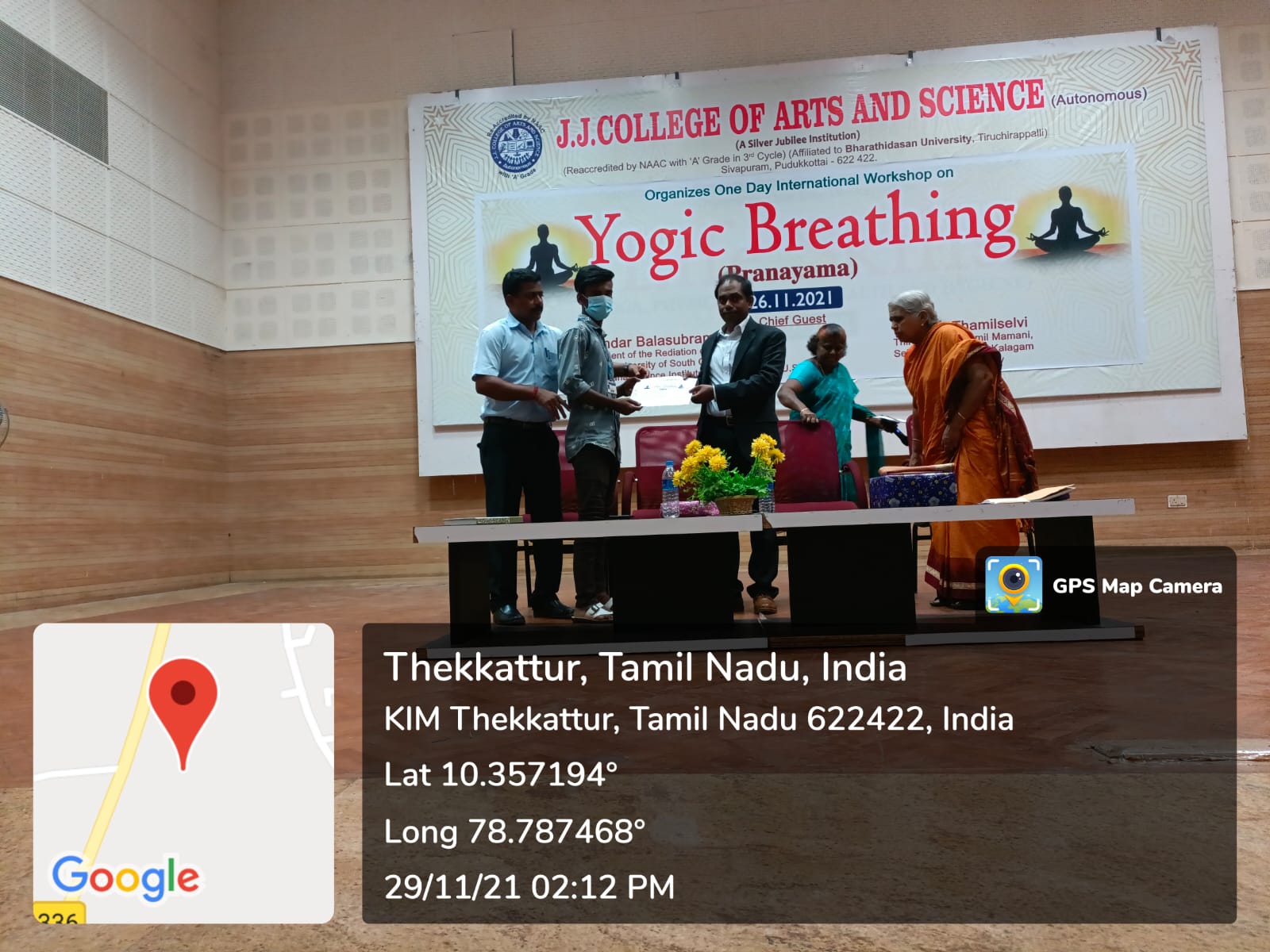 புதுக்கோட்டைஜெ.ஜெ கலை அறிவியல் கல்லூரி (தன்னாட்சி) உடற்கல்வி உடல்நலக்கல்வி மற்றும் விளையாட்டுத்துறை சார்பாக 29.11.2021 அன்று பிரணாயாமம் பற்றிஒருநாள் பன்னாட்டுக்கருத்தரங்கம்நடைபெற்றது.