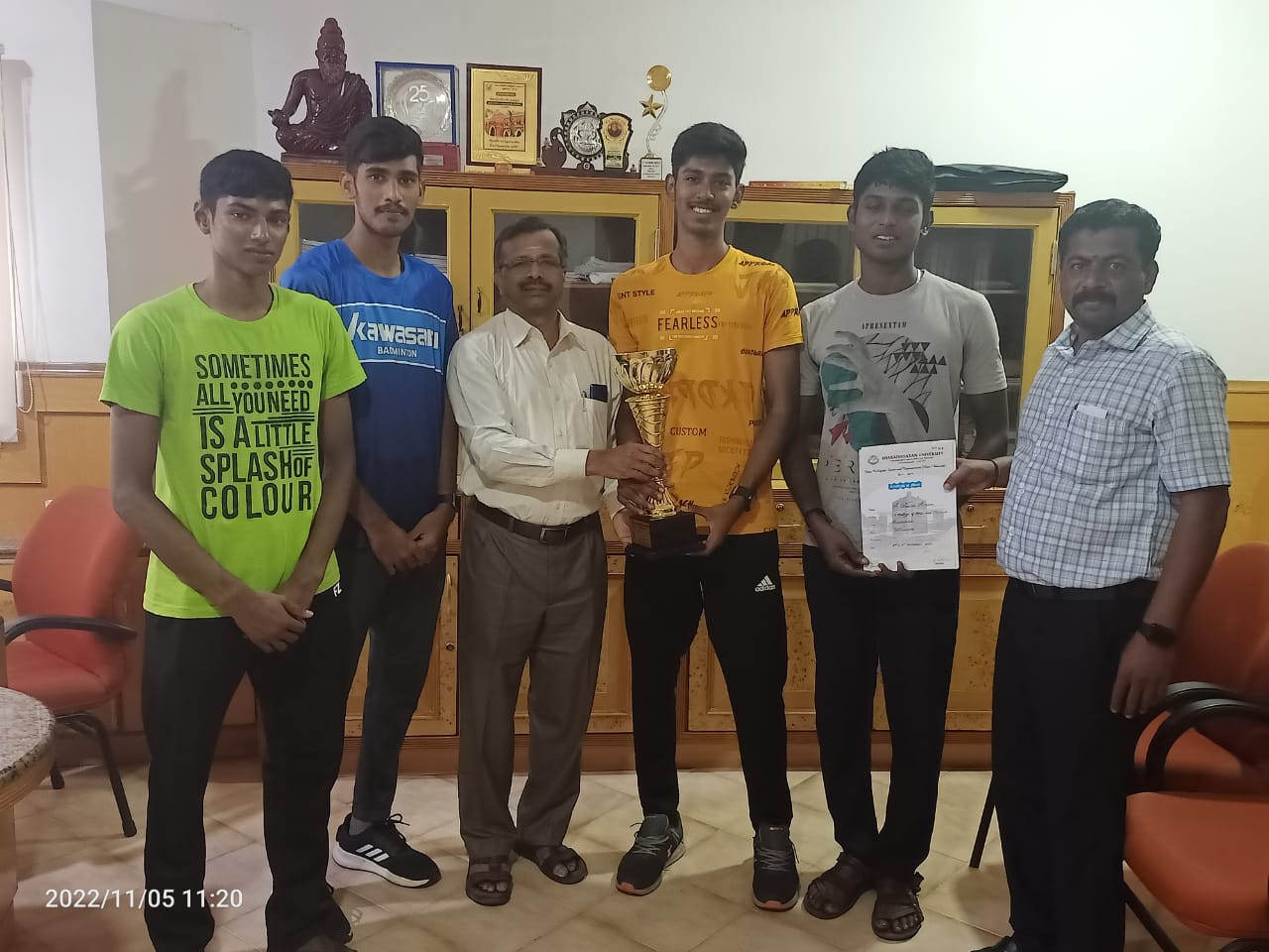 போட்டியில் வென்ற மாணவர்களை கல்லூரி செயலர் திரு. நா.சுப்பிரமணியன், முதல்வர் முனைவர் ஜ.பரசுராமன், உடற்கல்வித்துறை தலைவர் முனைவர் K.ஜெகதீஸ் பாபு மற்றும் பேராசிரியர்கள், மாணவ மாணவியர் பாராட்டினர்.