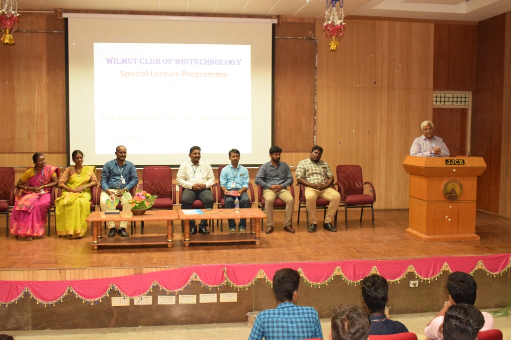 On behalf of Wilmut Club of Biotechnology, J.J. College of Arts and Science (Autonomous), Pudukkottai, organized a special lecturer program on 28/06/2019, at Gallery Hall (A/C) by Dr.P. Ramachandran, Director and Head, Trichy Regenerative Medicine, Trichy.