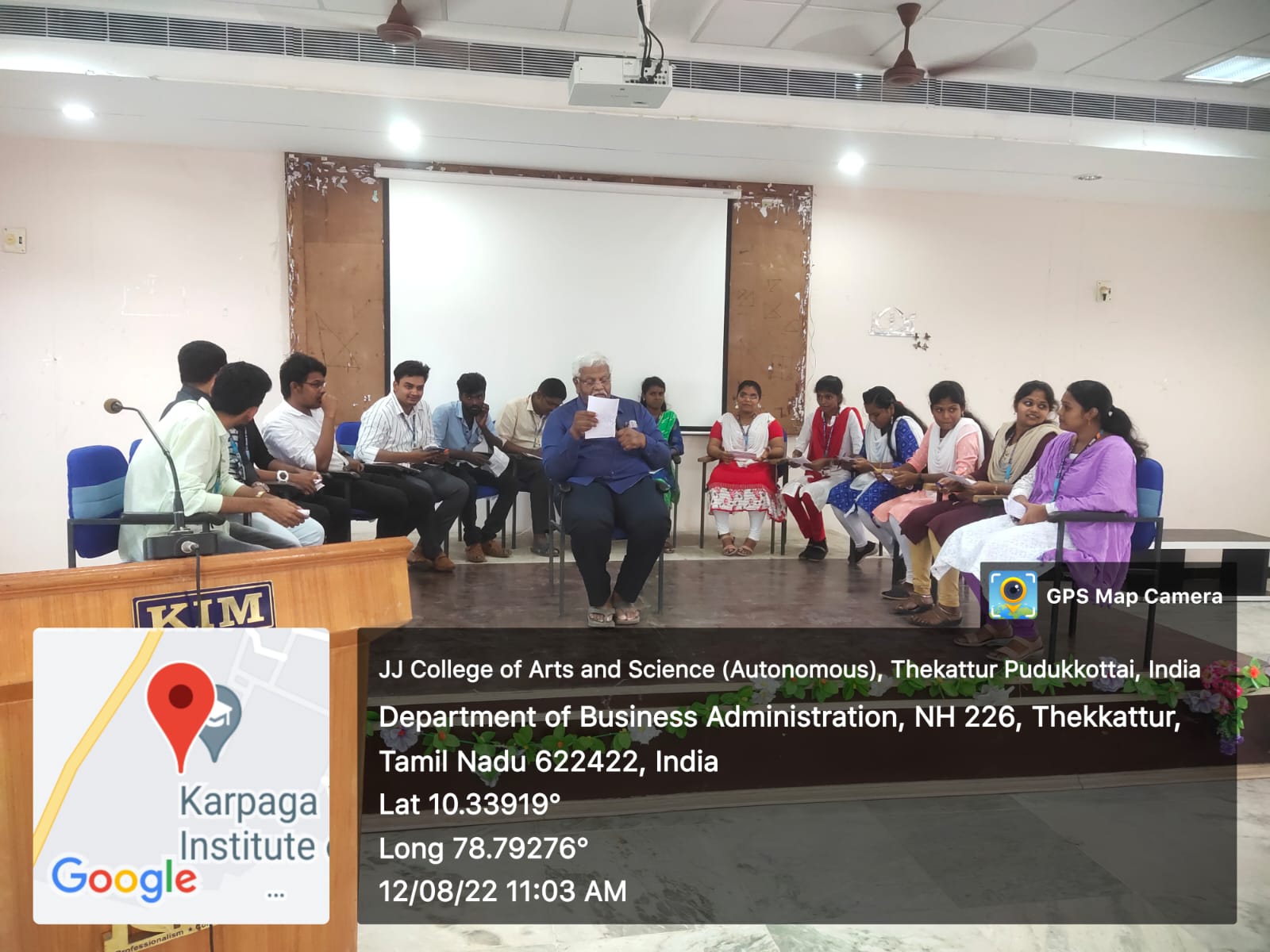 The Drucker’s Club of the Department of Business Administration, J.J. College of Arts and Science (Autonomous), Sivapuram, Pudukkottai organized a debate on what has been achieved and what is yet to be achieved after 75 years of freedom. The final year students of MBA and BBA were the participants. Prof.J.A.Arul Chellakumar, Former Professor and Director, CCCD, Bharathidasan University, Tiruchirappalliwas the mediator. Each team consisted of seven members.