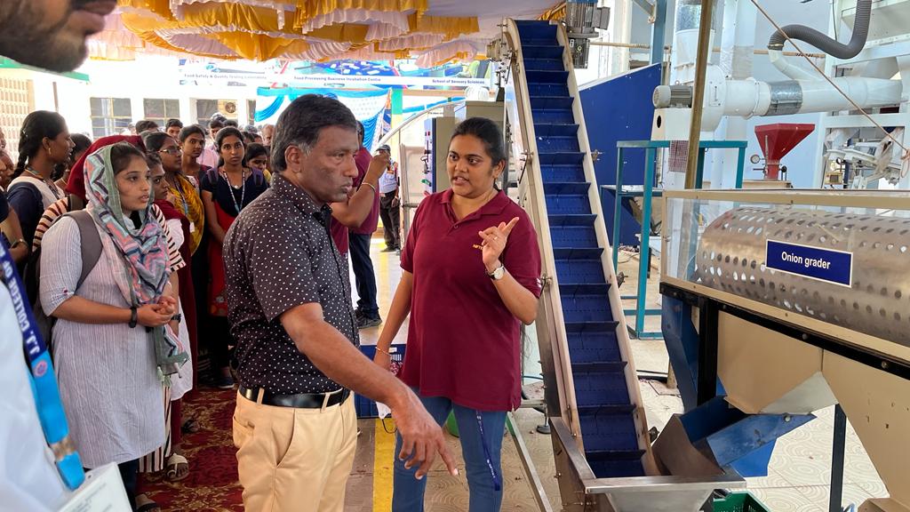தஞ்சாவூரில் இயங்கிவரும் உணவுத் தொழில்நுட்பம், தொழில் மேம்பாடு மற்றும் மேலாண்மை நிறுவனத்தின் பார்வையாளர் தினத்தை முன்னிட்டு, உணவுப் பொருட்கள், நெல் வகைகள் பதப்படுத்துதல் போன்றவைகளின் கண்காட்சி நடைபெற்றது. இதில் புதுக்கோட்டை, ஜெ.ஜெ. கலை, அறிவியல் கல்லூரி வேதியியல் துறை மாணாக்கர்கள், துறை தலைவர் முனைவர் சி.முத்துக்குமார் தலைமையில் கலந்து கொண்டு, தனது துறை சார்ந்த அறிவைப் பெற்றனர். இதில் நெல் வகைகளான மாப்பிள்ளை சம்பா, குதிரைவாலி, திணை, கருப்பு கவுனி, கைக்குத்தல், காட்டுப் பாணம்,மூங்கில் அரிசி, கிச்சலி சம்பா, தூயமல்லி, சீரக சம்பா, கருடன் சம்பா மற்றும் குடவாழை சிகப்பு அரிசி போன்றவை இடம்பெற்றிருந்தன. இவைகளை சமையலுக்கு பயன்படுத்தும் பொழுது நம் உடலில் தோன்றும் ஆரோக்கிய மேம்பாடு குறித்து விளக்கங்கள் அளிக்கப்பட்டன. சிறு தானியங்களான வரகு, சாமை, திணை, குதிரைவாலி, கம்பு, கேழ்வரகு மற்றும் சோளம் ஆகியவற்றில் காணப்படும் சத்துக்களும் அவற்றின் மூலம் தயாரிக்கப்படும் தின்பண்டங்கள் லட்டு, அதிரசம், முறுக்கு, ஓலை பக்கோடா, கூழ், புட்டு மற்றும் பாயாசம் ஆகியவைகளும் காட்சிக்கு வைக்கப்பட்டு, அவைகள் தயாரிக்கப்படும் முறைகளும் விளக்கப்பட்டன. பின்னர் அந்த நிறுவனத்தில் செயல்படும் பகுதியான அரிசியின் ரகங்களை கண்டறிந்து, தூய்மைப்படுத்தும் பகுதியில் மானாகர்கள் அனுமதிக்கப்பட்டு, விளக்கம் அளிக்கப்பட்டது. அதன் பிறகு உணவுப் பொருட்களை கெடாமல் பாதுகாக்க பதப்படுத்தும் பிரிவுகளுக்கு மாணாக்கர்கள் அனுமதிக்கப்பட்டனர். அதில் எவ்வாறு மிகக் குறைந்த அளவில் உடலுக்கு தீங்கு விளைவிக்காத, ரசாயனங்களை சேர்த்து, மிதமான வெப்பநிலையில் உணவுப்பொருட்களை பயன்படுத்தலாம் என்றும், அதில் நுண்ணுயிரிகள் வளரா வண்ணம் பாதுகாக்கலாம் என்றும், விளக்கப்பட்டது. மேலும் அந்த நிறுவனத்தில் உள்ள தானியங்களை கொள்முதல் செய்தல், தரம் பிரித்தல், உணவுப் பொருட்களை தயார் செய்தல், விற்பனைக்கு அனுப்புதல் போன்ற பல்வேறு பெருவுகளில் மாணாக்கர்கள் அனுமதிக்கப்பட்டு விளக்கங்கள் கொடுக்கப்பட்டன. இந்த பார்வையாளர் தினமானது வேதியல் துறை மாணாக்கர்களுக்கு மிகவும் பயனுள்ளதாக அமைந்திருந்தது. இதற்கான ஏற்பாடுகளை துறையின் உதவி பேராசிரியர்கள் செல்வி K.R.உலகுமற்றும் P.சந்தியா பிரியா ஆகியோர் செய்திருந்தனர்.